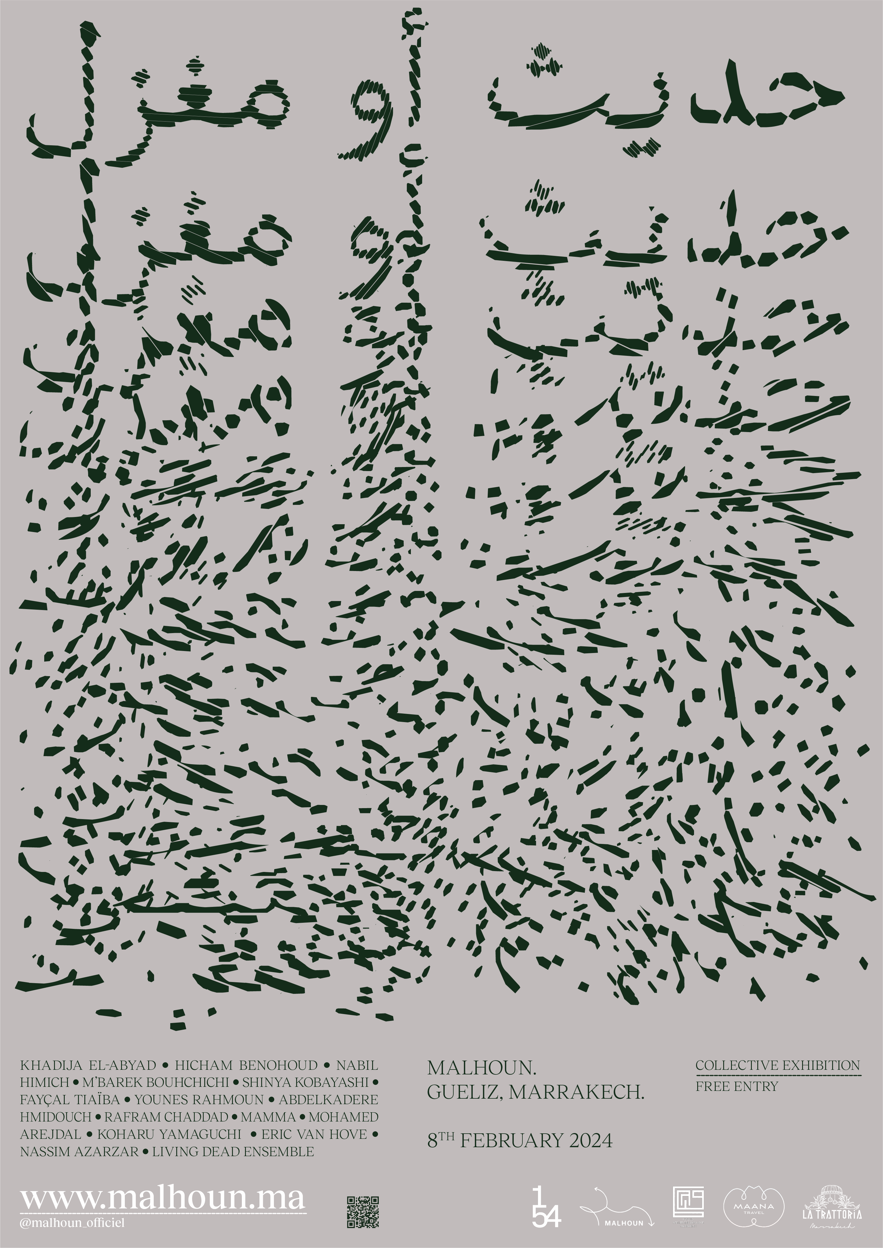 Visual identity for Malhoun Art Space for the exhibiton held during 1-54 Contemporary African Art Fair, in Marrakesh. This encompassed three distinct posters in various languages, an exhibition leaflet, and space signage.